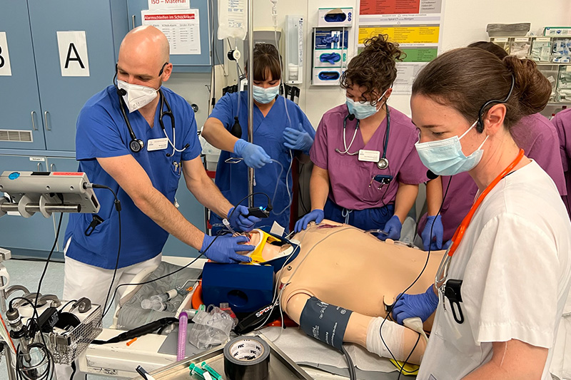 In den gemischten Teams müssen alle im Behandlungsraum »dieselbe Sprache« sprechen. In der Simulation geht es um die Kommunikation im Team, wie werden Entscheidungen getroffen. Dabei werden die Fachkräfte bewusst unter Stress gesetzt, damit das Übungsszenario so realistisch wie möglich ist. Es wird aus verschiedenen Blickwinkeln beobachtet und gefilmt, anschließend die Situation bei einem ausführlichen Debriefing besprochen.