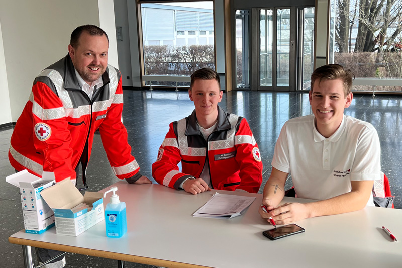 Daniel Schnell, Hauptamtlicher beim DRK-Blutspendedienst freute sich über die prominenten Spender und ihren Aufruf. Landrat Dr. Ulrich Fiedler lobte das große Engagement: „Ich danke dem gesamten Team für die tolle Zusammenarbeit und die Organisation der Termine. Durch die gute Versorgung und Betreuung fühlt man sich hier bestens aufgehoben.“ Bürgerinnen und Bürgern, die noch zögern, spricht Landrat Dr. Fiedler Mut zu: „Geben Sie sich einen Ruck und kommen Sie zum Blutspenden vorbei. Jede Spende kommt dort an, wo sie gebraucht wird.“