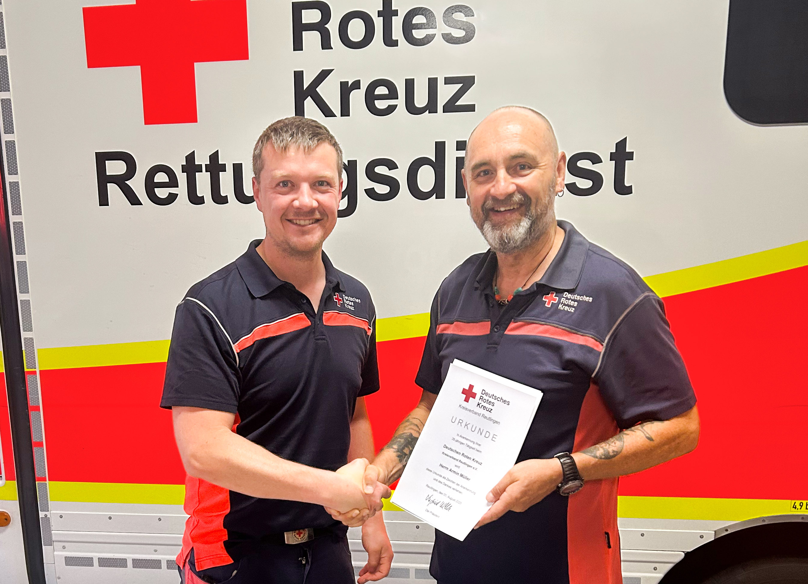 Wir danken Armin Müller herzlich für 35 Jahre Treue, Einsatz und Verlässlichkeit im Rettungsdienst – und wünschen ihm schon heute viel Freude und Erfolg auf allen Wegen, die noch vor ihm liegen!